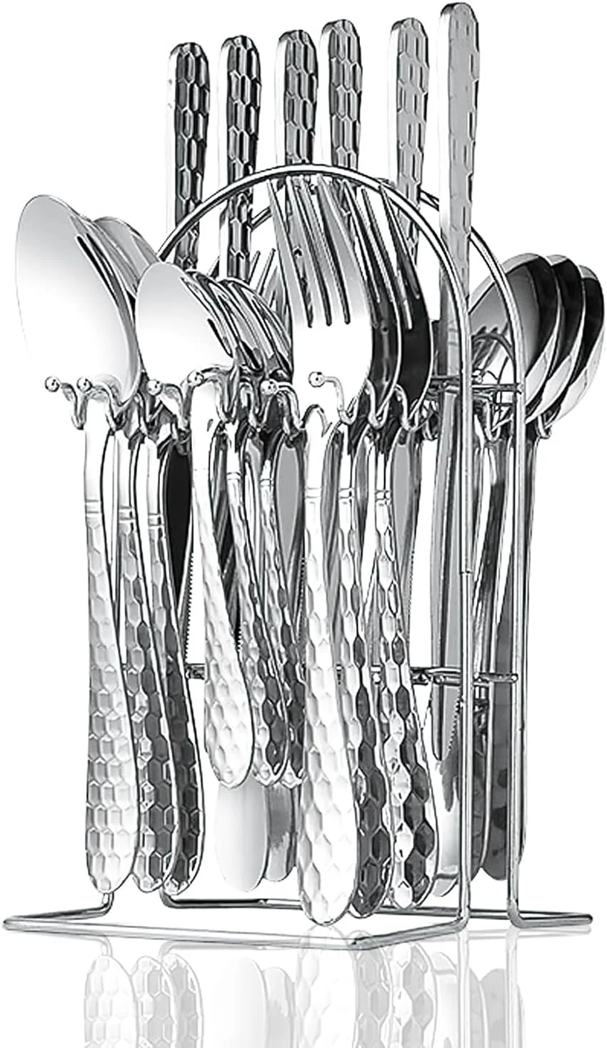 Perfect for Gift Giving: With its designer holder and elegant presentation, this 24-piece stainless steel flatware set makes an exceptional housewarming, wedding, or holiday gift—arriving as a complete dining solution.